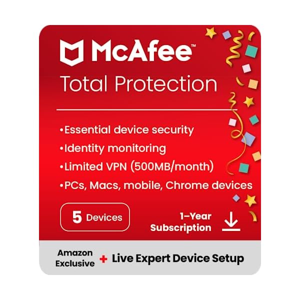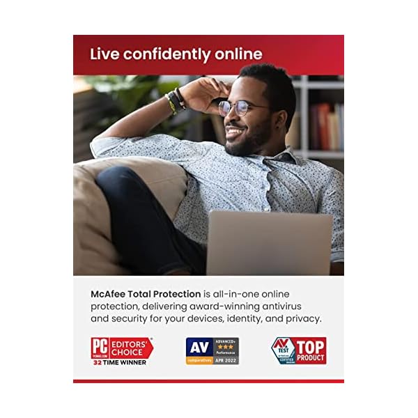 MCAFEE TOTAL PROTECTION IS ALL-IN-ONE PROTECTION – antivirus, security, identity, and privacy protection for 5 devices for 1 year