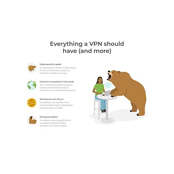 Grizzly-grade security: TunnelBear uses AES-256 encryption by default.